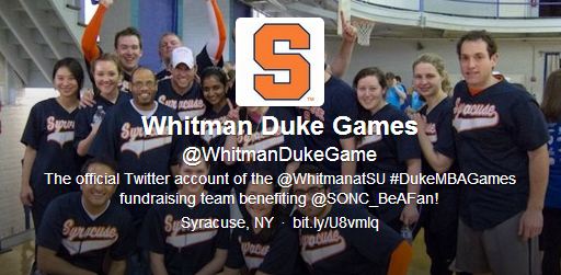 I am still managing both the Twitter and Facebook pages for the Whitman Team, and will be until the Duke MBA Games in April. As I continue through the rest of the year, I am optimistic that we will gain a larger social media presence, which will increase our fundraising efforts. Additionally, as I continue through this process, I am sure I will continue to fail and I learn what doesn’t work, but I am sure I will succeed as well as I learn what does.