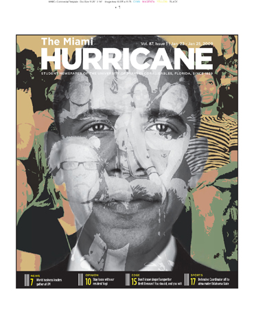 The Miami Hurricane Newspaper, January 2009, Coral Gables, FL. Columbia Scholastic Press Association Gold Circle Award, Photo Illustration, Honorable Mention.