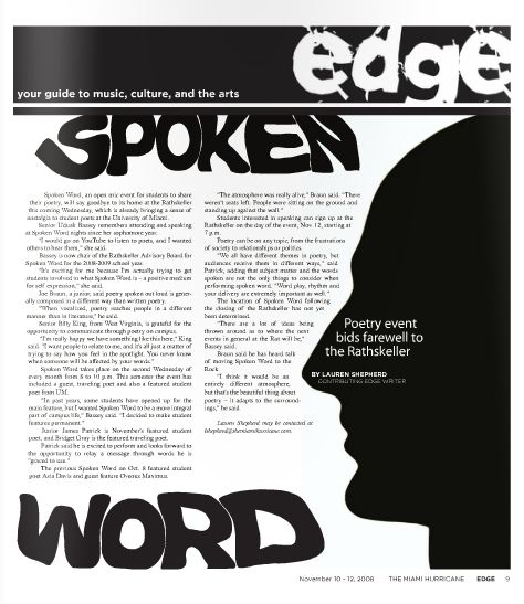 The Miami Hurricane Newspaper, November 2009, Coral Gables, Fl. Columbia Scholastic Press Association Gold Circle Award, Feature Page Design, Second Place.