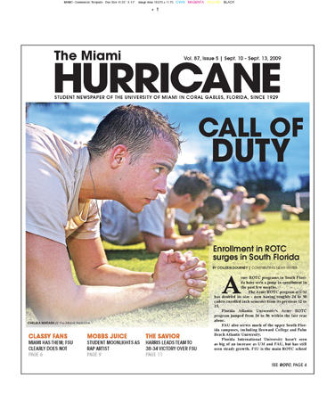 The Miami Hurricane Newspaper, September 2009, Coral Gables, FL. Second redesign the paper had been through in 3 years.