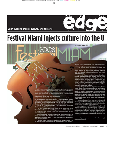 The Miami Hurricane Newspaper, October 2008, Coral Gables, Fl. Columbia Scholastic Press Association Gold Circle Award, Second Place, Feature Page Design.